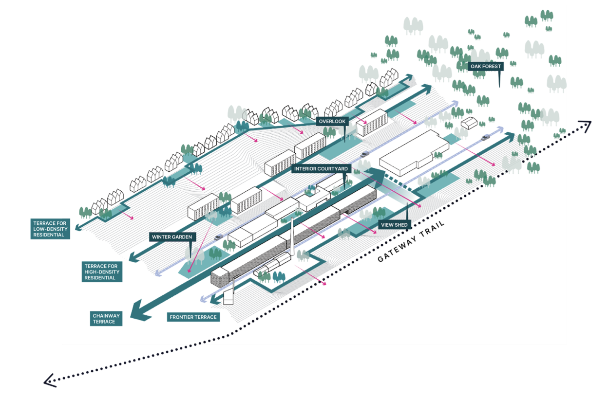 The vision for transportation at SouthWorks centers on connectivity, walkability, micro-mobility, and transit access, all designed to reduce reliance on gas-powered vehicles and ease the financial burden of car ownership. The development and design teams are collaborating with local transportation experts to ensure these modes are integrated thoughtfully into the site. SouthWorks will leverage its unique topography to become a key circulatory connector on South Hill, incorporating public transit access, safe infrastructure for bikes and scooters, the Gateway Trail linking four New York State parks, and vibrant outdoor gathering spaces. These features will support a healthier, more connected, and more sustainable way of moving through the community.