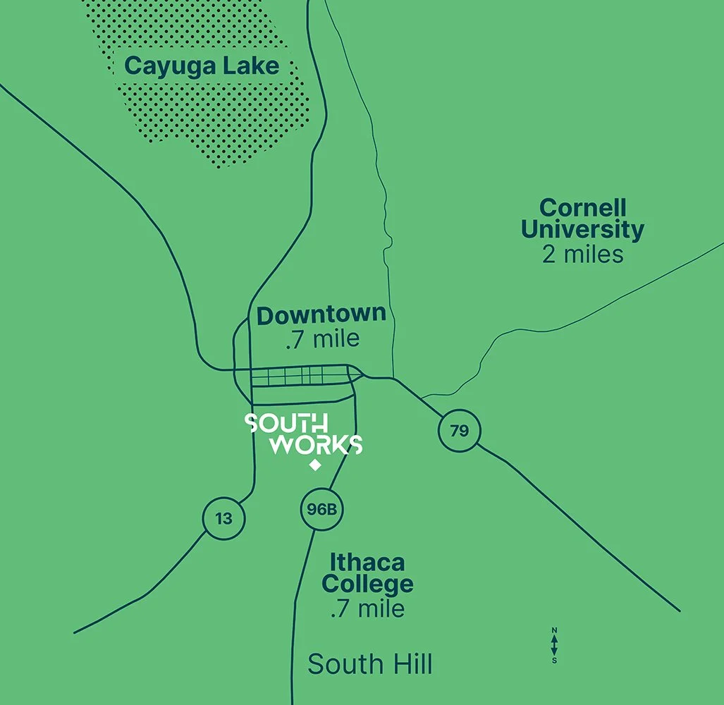 SouthWorks is easily accessible to central points throughout Ithaca and near to regional city hubs.