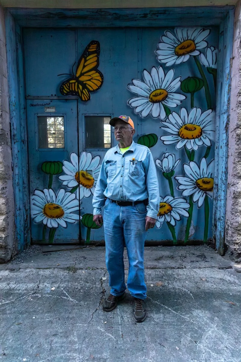 Whittaker stands among the freshly painted entrance of the factory he used to work at. Sofia Fitzgerald