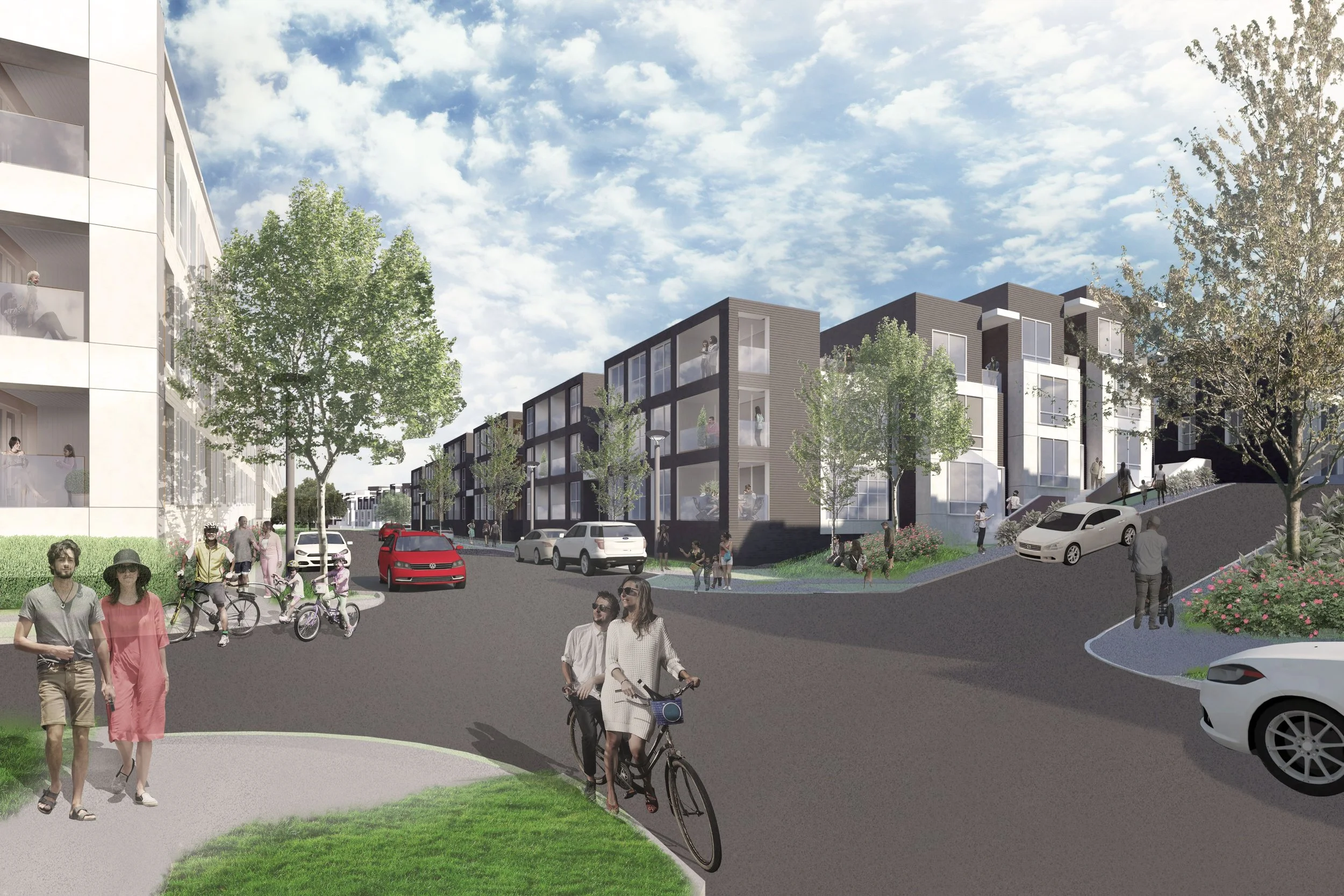 A walkable, mixed-income, mixed-use neighborhood with open space, recreation areas, and multimodal infrastructure.